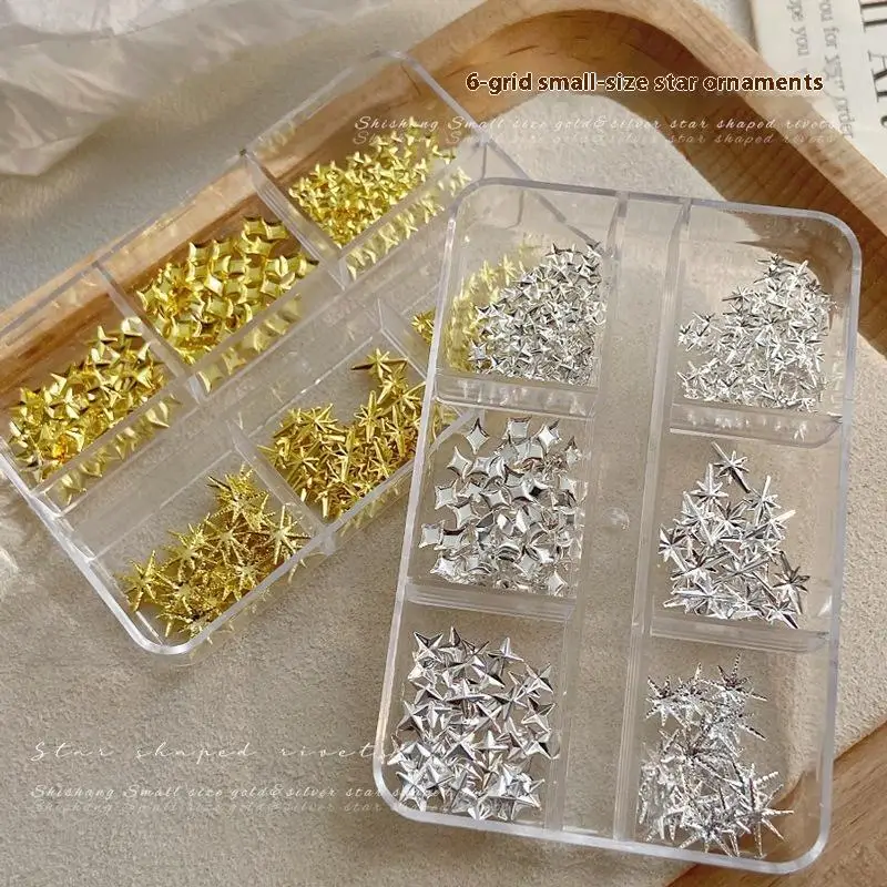 6 Girds 3D Metal Stars Nail Rivet Studs Decoration Starlight Sparkle Jewelry Nail Arts Tools Alloy Manicure Accessories