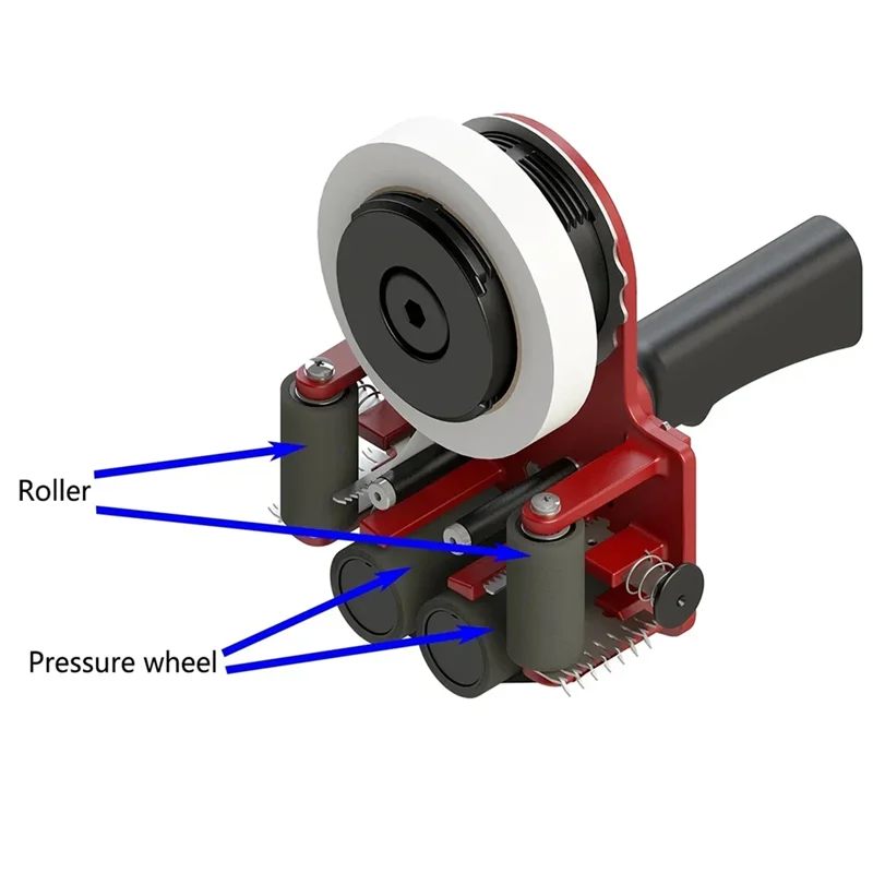 5. Pressure wheel: built-in two industrial-grade bearings, outsourcing wear-resistant buffer rubber, rolling smoothly, when in use, stick the tape tightly to the working surface of the inner corner; Stop block: limit masking paper to prevent drifting;