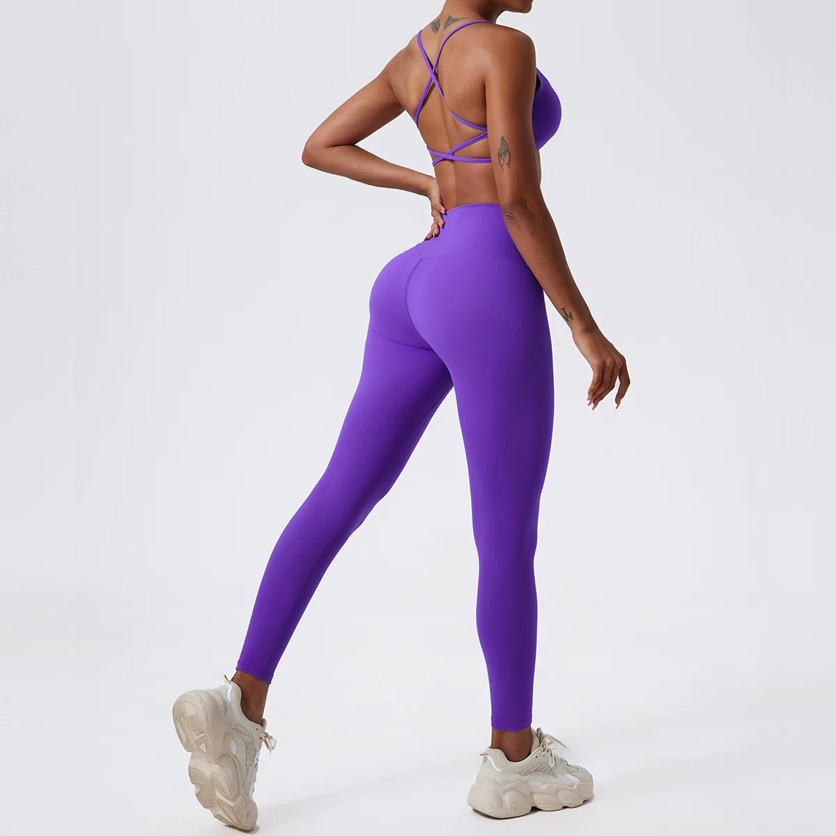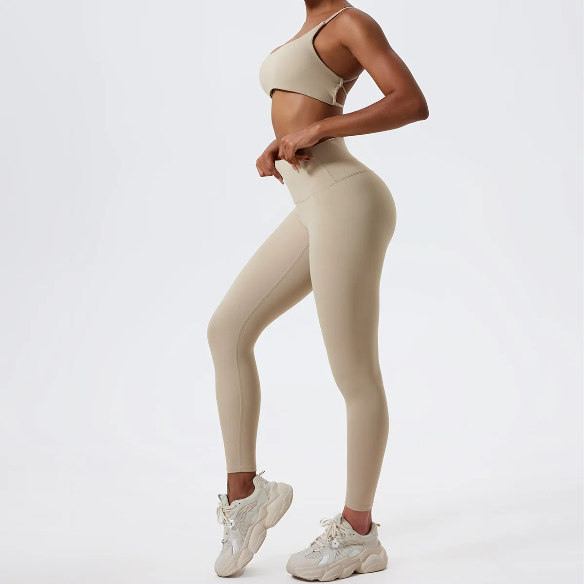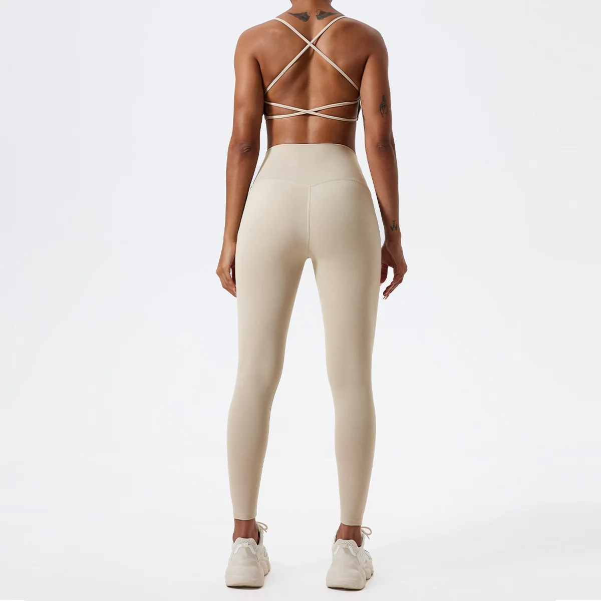 LezyanXR Nude Beautiful Back Breathable Tight Quick Drying 2 Pieces Gym Yoga Sport Running Exercise Workou Set Womens Outfits
