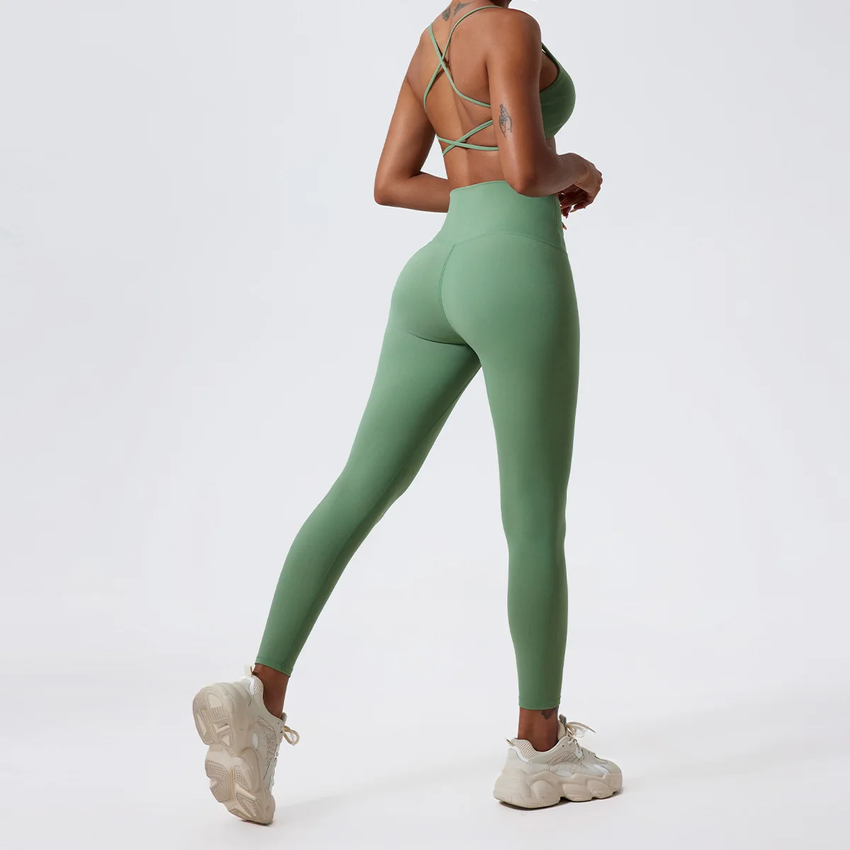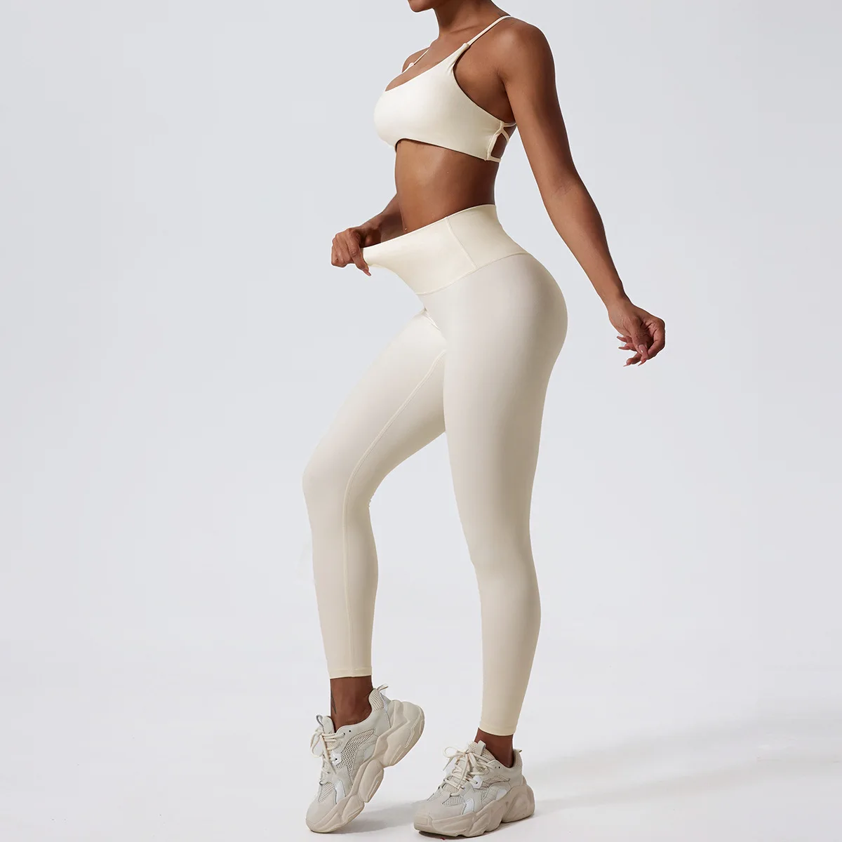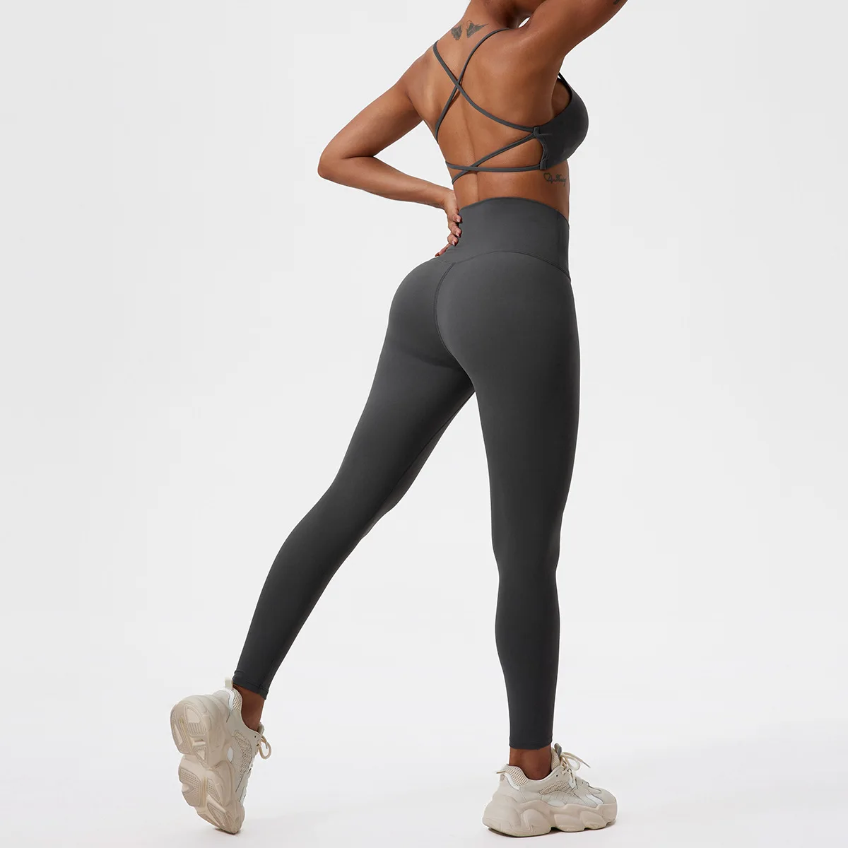 LezyanXR Nude Beautiful Back Breathable Tight Quick Drying 2 Pieces Gym Yoga Sport Running Exercise Workou Set Womens Outfits