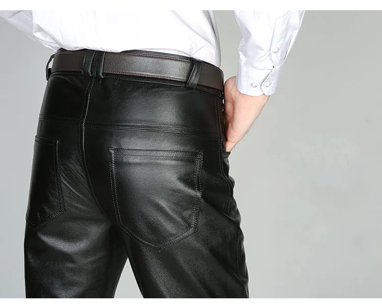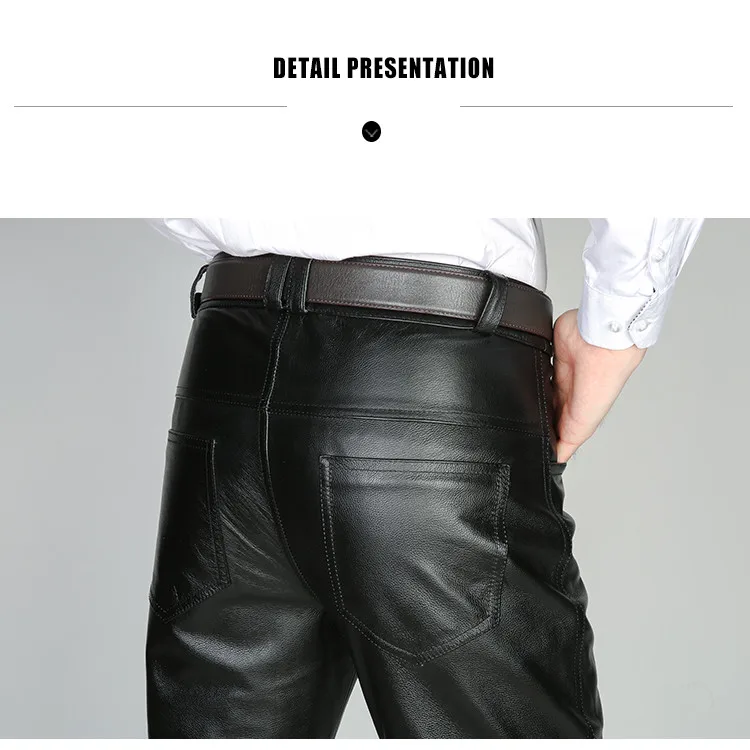 3. Warm, straight ,genuine leather pants,fashion design motorcycle pants