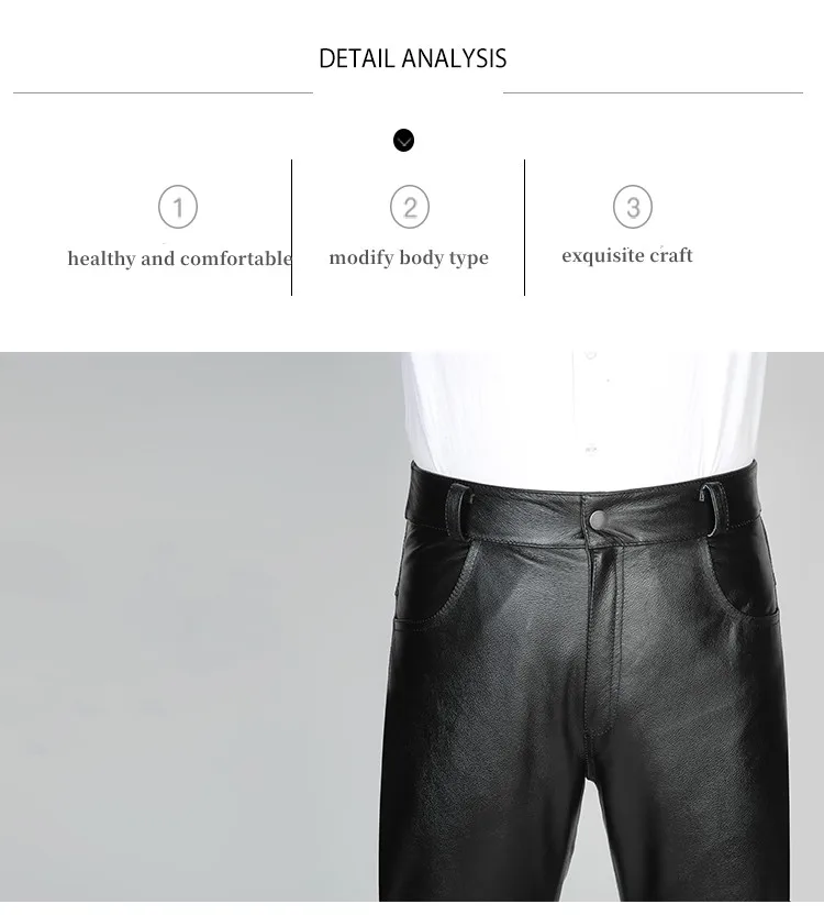 Crafted from premium genuine leather, these pants offer durability and a luxurious feel for everyday wear.