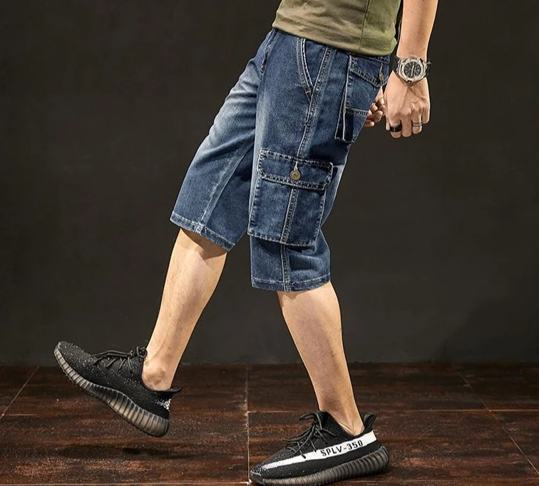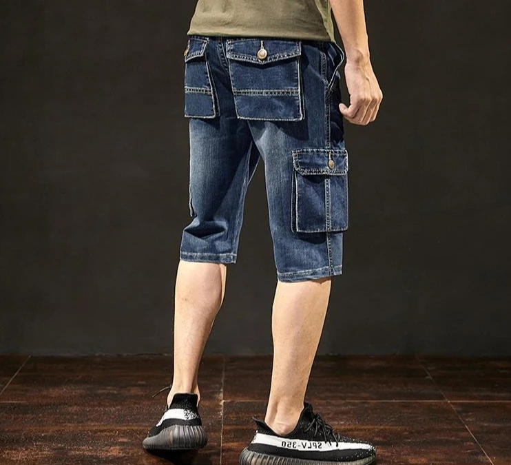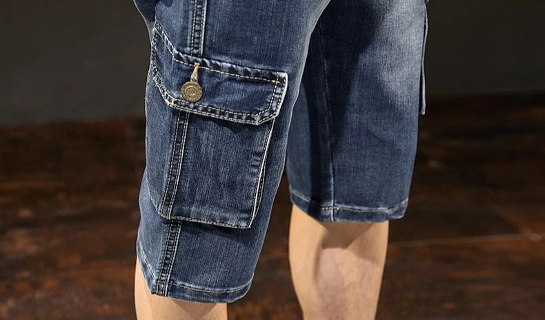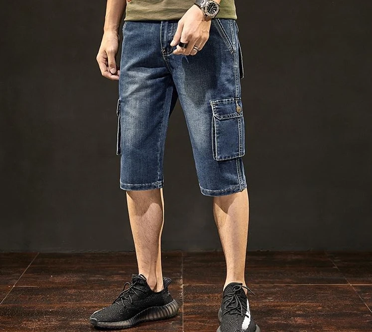 Men's Short Jeans Pants Blue Straight Cargo with Pockets Male Half Denim Shorts Cowboy Designer Stretchable Wih Zipper Stretch