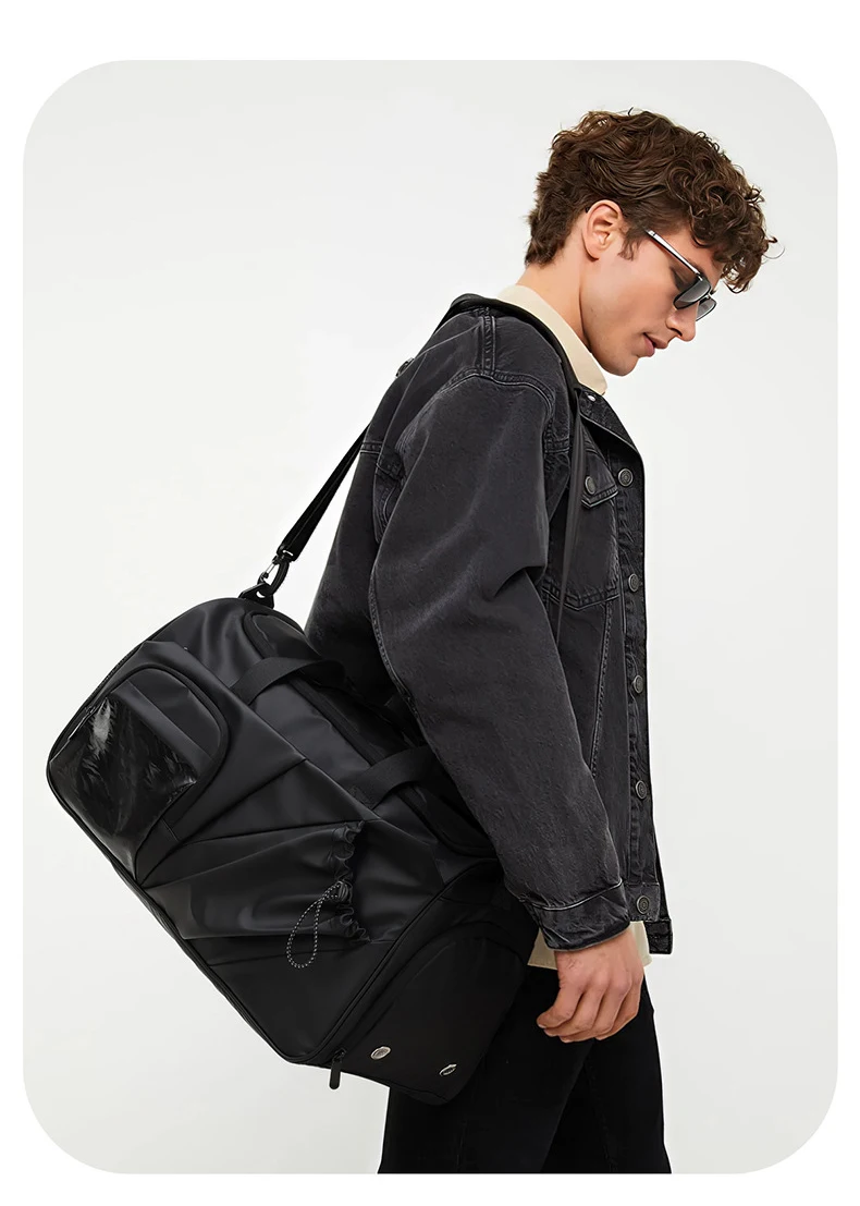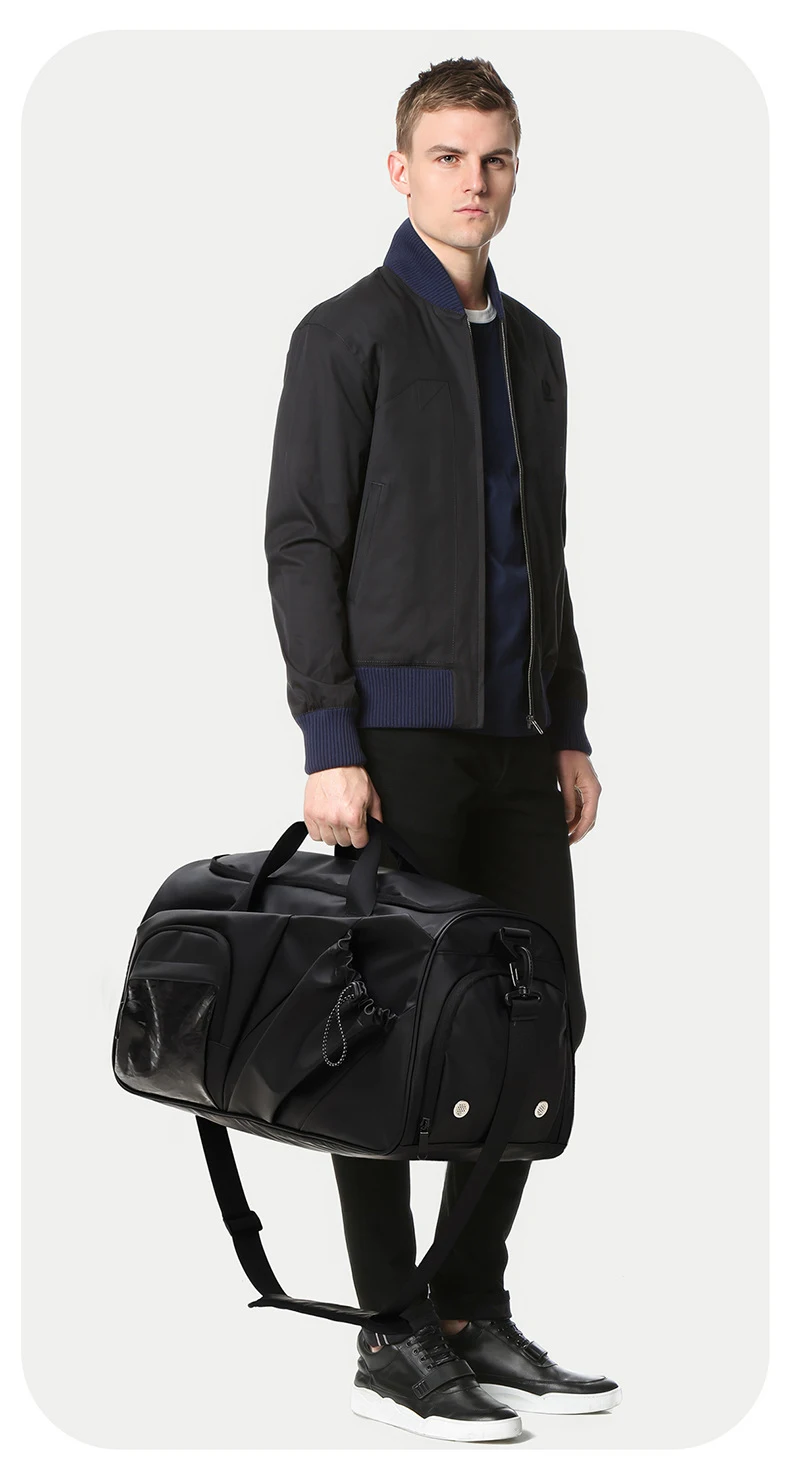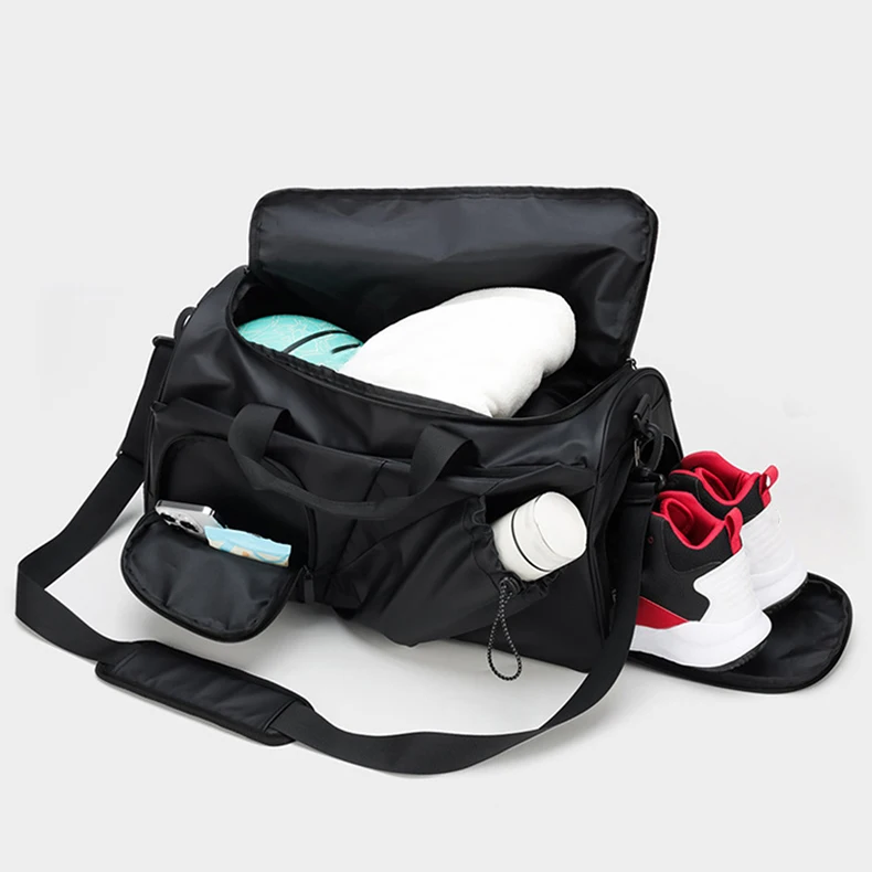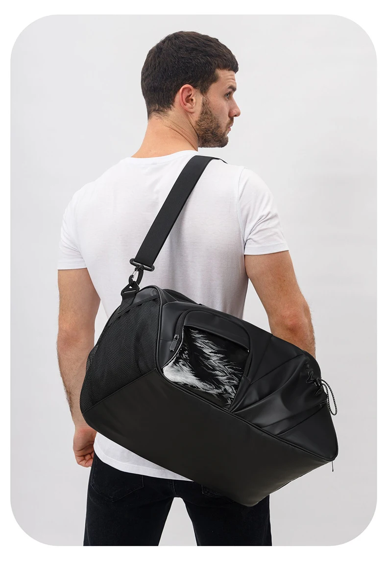 1. Large-capacity main pocket setup, built-in wet/dry separator pocket, side mesh pockets setup in the bag body, multiple zip secondary pockets, separate shoe compartment and water bottle insert pocket. Partition storage, easy access