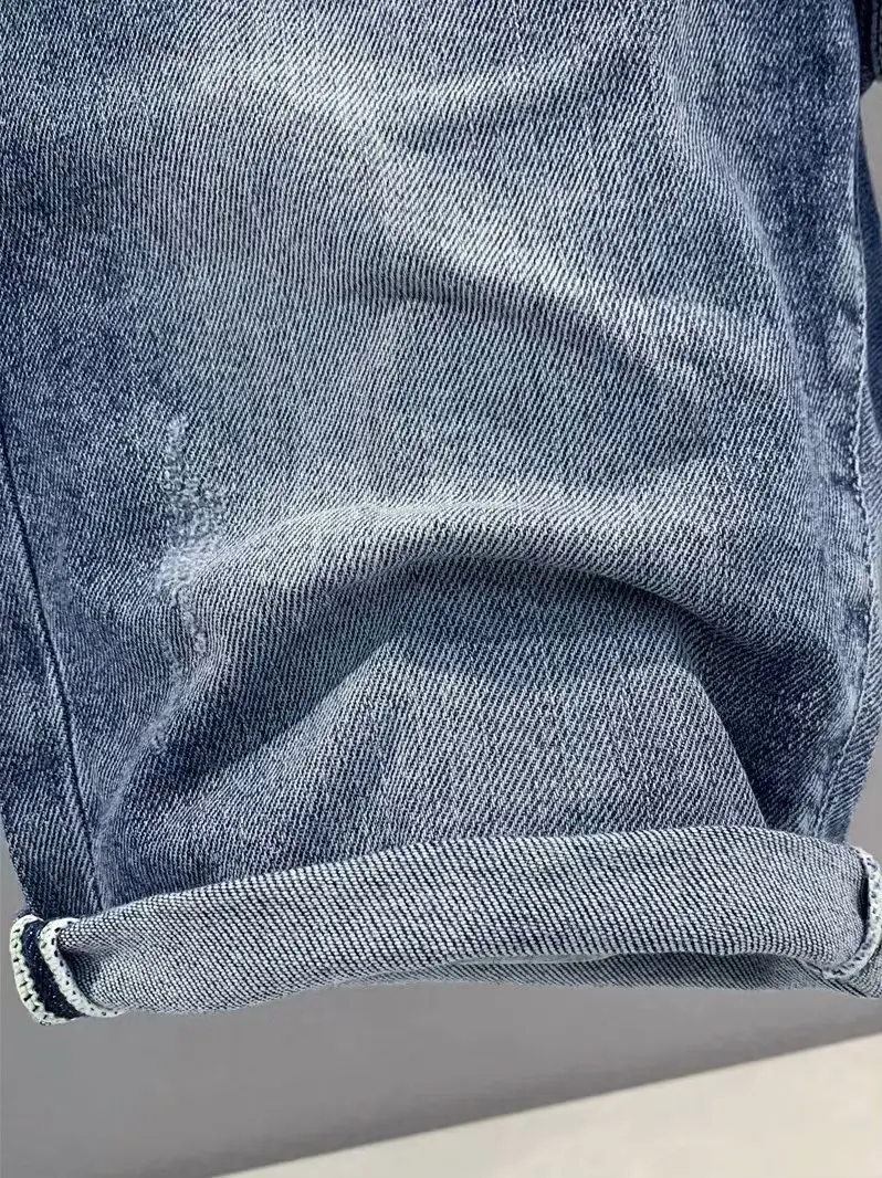 This summer's new European-style denim shorts for men offer a trendy and stylish look, perfect for the fashion-forward.