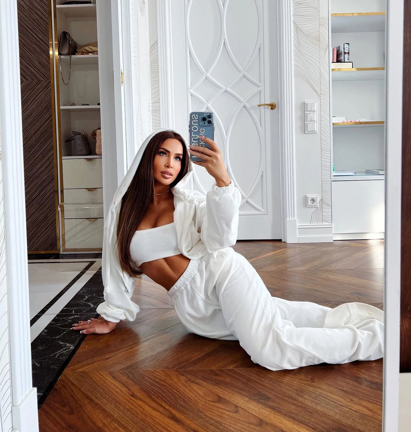 This women's casual winter suit features a relaxed fit and trendy design, perfect for everyday wear.