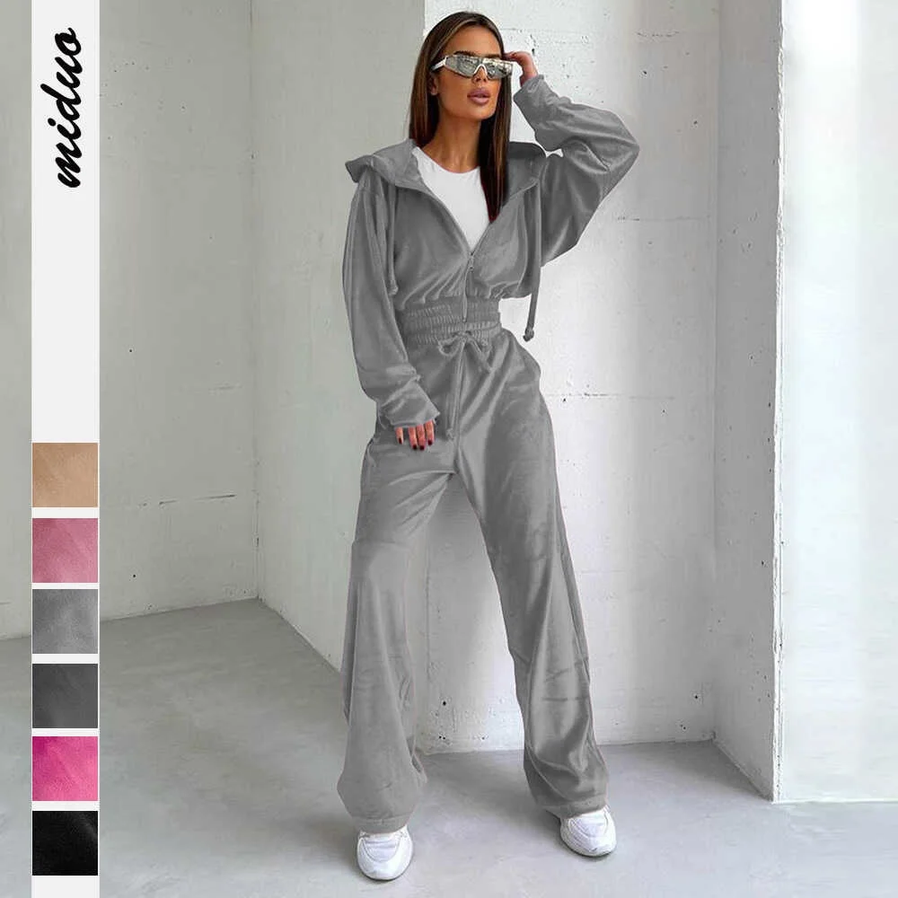Women's Casual Winter Suit Hooded Zipper Sports Jaet And Long Pants Two-Piece Set Autumn Winter Faion Ladies' Wear